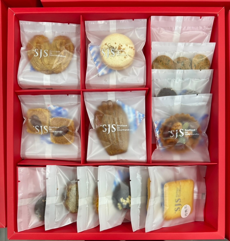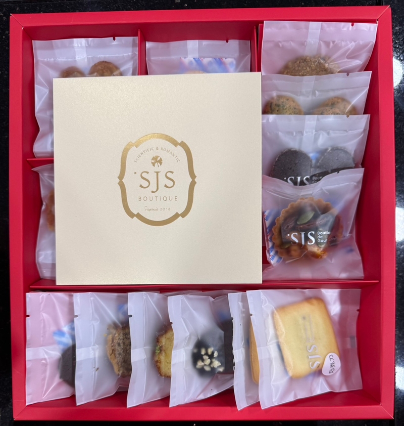 所以挑選喜餅時這就是我考量的一大因素,要看起來都會很有想吃的衝動,上網爬文,再試吃五、六間後,終於有一間符合我的期待,那就是SJS Boutique 法式喜餅 ,餅乾好吃蛋糕更是讓我驚艷,有些一吃有一種粉粉鬆鬆的感覺,有些則是太乾,他們的恰到好處,每一個品項都是獨立包裝,且都可以常溫保存,非常推薦👍