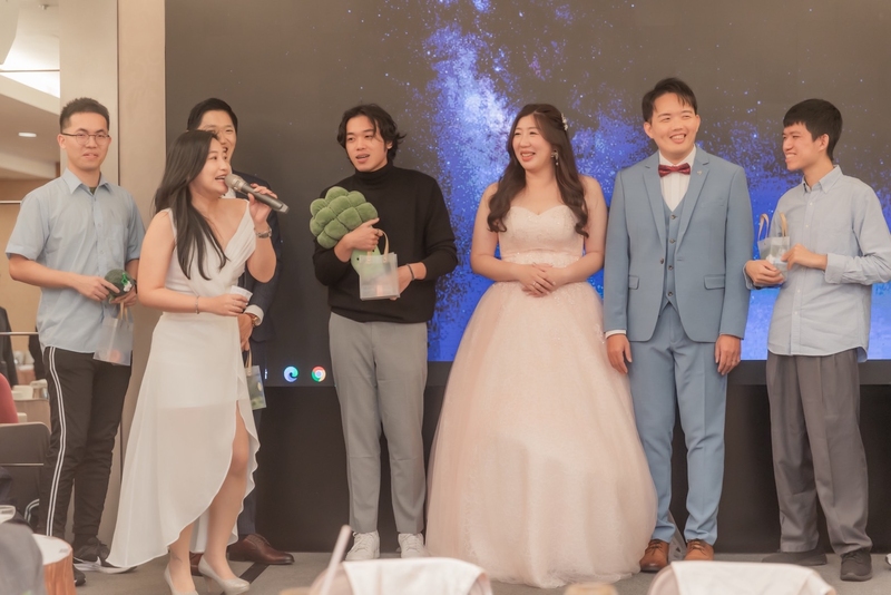 從前面約時間討論活動流程細節一切都很細心,原本沒有想要活動的我,千千也貼心的推薦簡單溫馨的小活動(新娘送捧花、比賽拼花椰菜、幸福刮刮卡),過程中也會不斷提醒新娘該回覆、確認的事情,讓粗線條的我們也能順利的安排好一切!