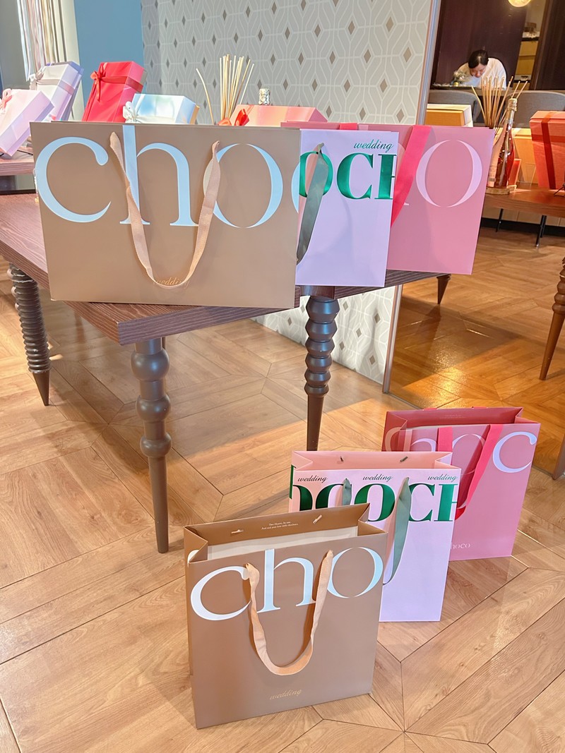 提袋我們選擇の是左邊金色袋子,我有試揹左上提袋,看起來很像百貨公司血拼完的戰利品XD 實際看是霧霧的金,有種低調の高級感,大寫的喜歡🥺✨
