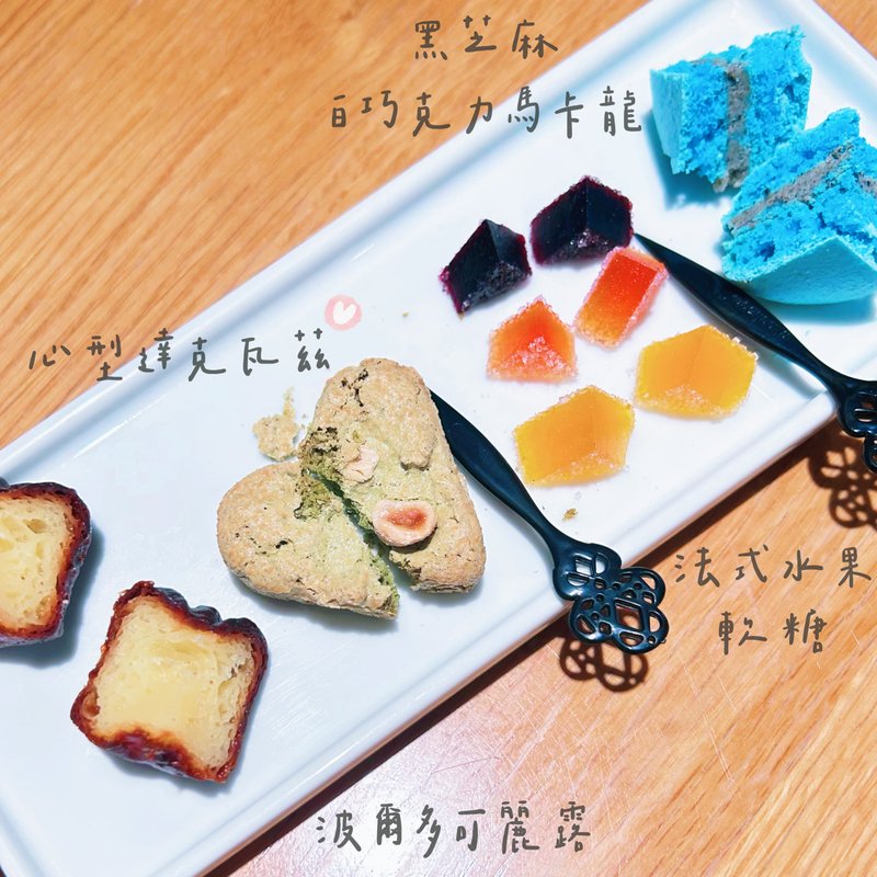 • 心型達克瓦茲:吃起來像蛋白餅一樣脆脆的,選它有 99.99999% の 原因是因為「愛心💗」,完全造型取勝!有夠可愛><