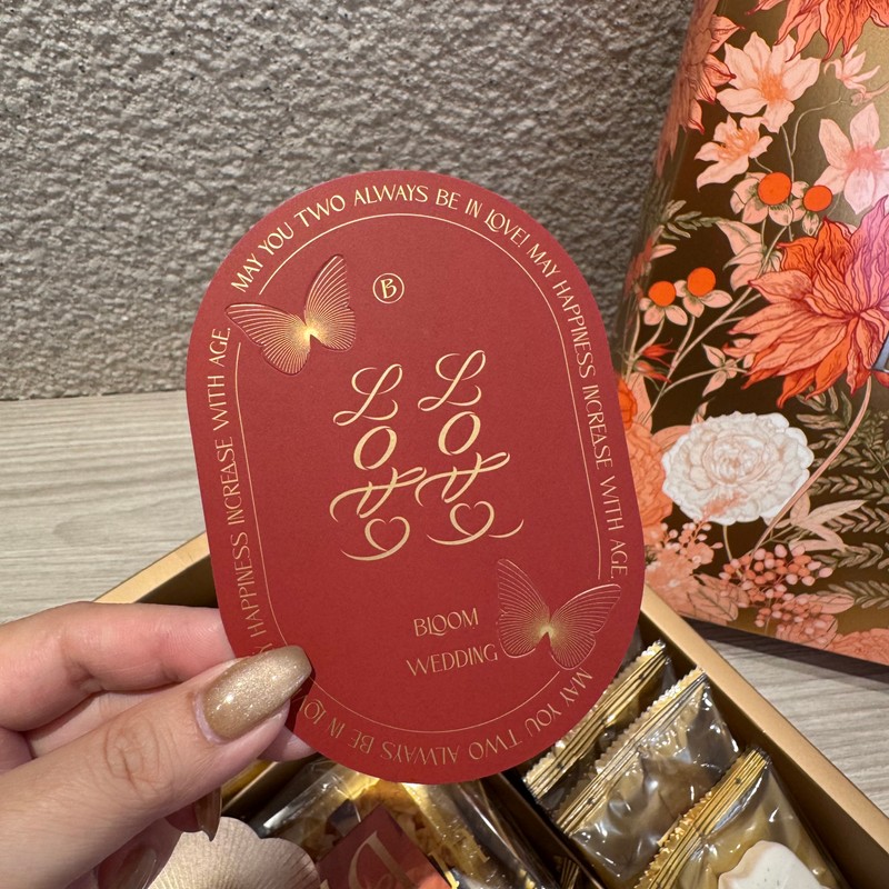 我超喜歡他們的公版喜卡,霧絨材質摸起來超有質感,酒紅底色配上燙金雙喜字,復古中帶點時尚感,完全收買細節控的心 🥹💘