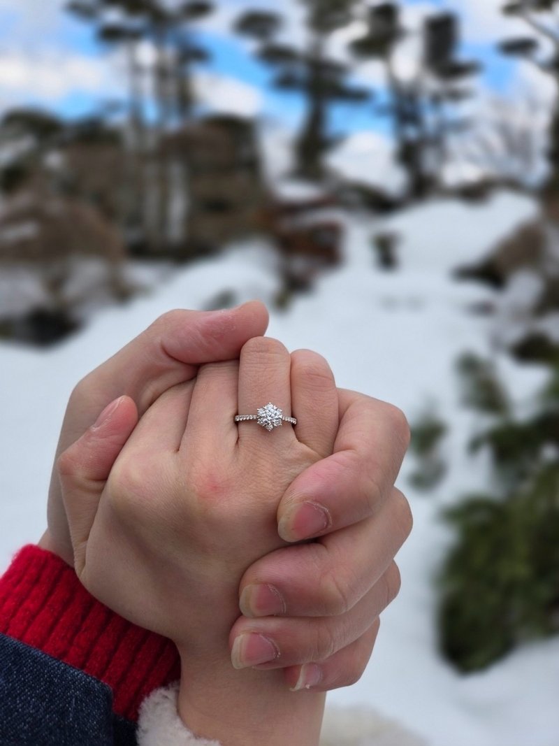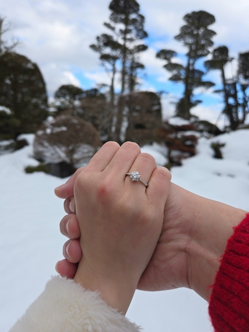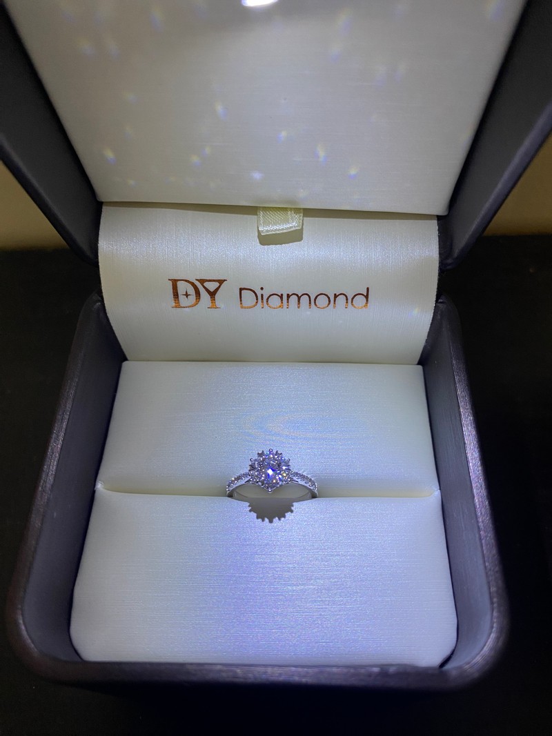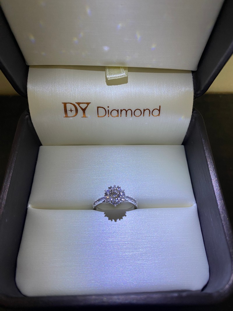 男友很認真挑選的款式,上面還有愛心圖案,原本購買的方案是可以換戒指樣式的但我挑了一輪試戴後還是喜歡它,最後只有更換戒指大小,過程店家的介紹很仔細服務也很棒,我們是在大亞鑽石古亭店買的~