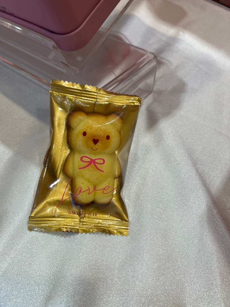 他們的小物也有非常多種類型,有熊熊外型的小蛋糕,是香橙口味的磅蛋糕口感,扎實且不會太甜膩,超級好吃的!還有愛心造型的馬卡龍,超級可愛!!