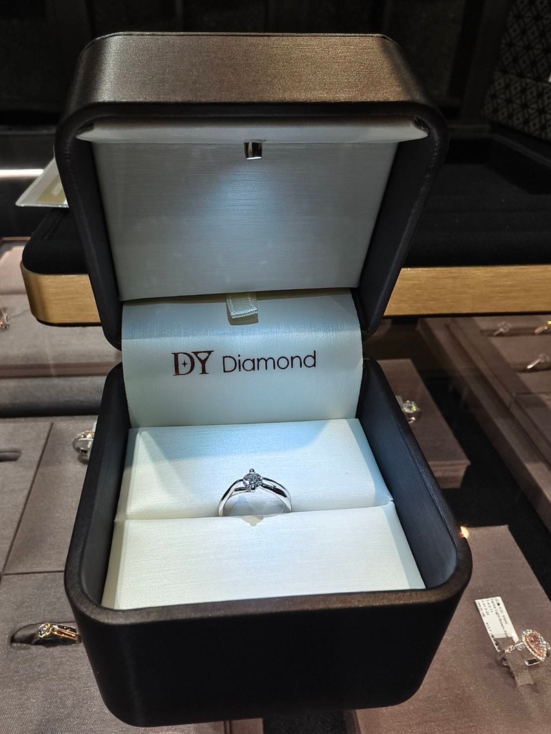 這次到大亞鑽石台北古亭店裡挑選鑽戒,整體體驗非常愉快。一踏進門就被明亮的燈光和優雅的裝潢吸引,展示的戒指在燈光下閃耀動人。接待我們的是店長,服務非常親切、不催促,讓我們可以自在地討論和挑選。現場也提供飲品,讓整個過程更輕鬆舒適。在挑選戒圍的時候,店長也細心說明後續可以回店再次確認尺寸,讓我們很安心,並且還有提供戒子免費刻字服務。鑽石都有詳細介紹與佐證資料,讓人感受到他們的專業與誠意。即使遇到製作時間可能延後,店家也主動說明與協調交件日期。最後取件時還貼心地送上小禮物,整體服務讓人印象深刻,是一次非常滿意的購買體驗。