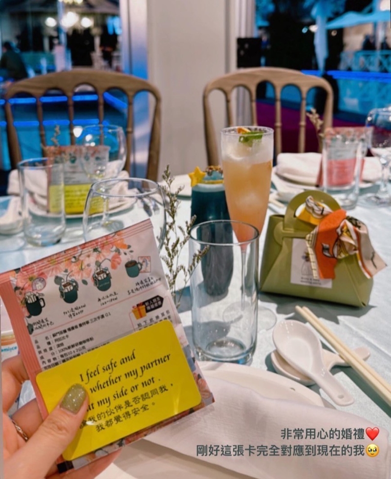 同時我們在咖啡包上,也黏上小小的記號貼紙,作為婚禮中媒合抽獎活動使用😍