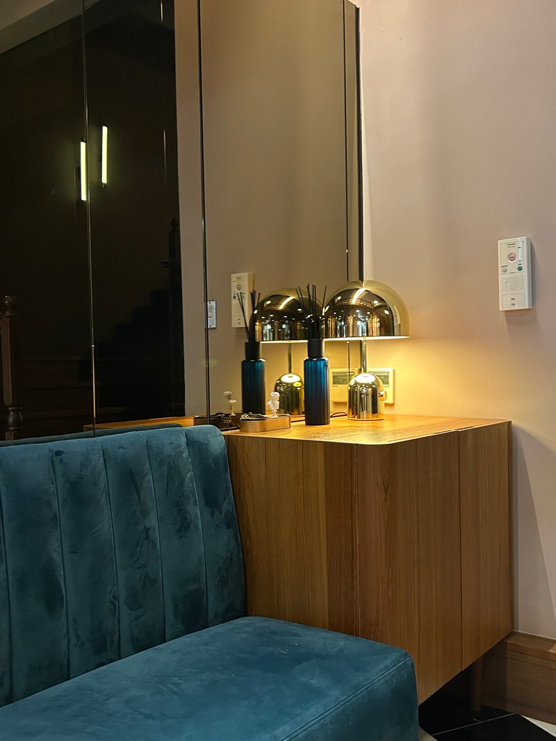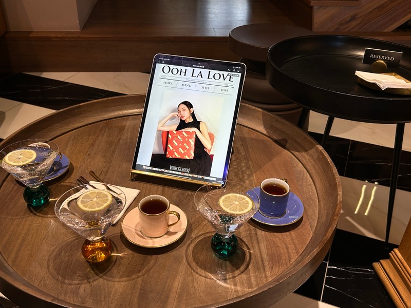 把我們的專屬入住鑰匙,放上牆頭櫃的金盤上 燈光瞬間點亮整個空間入座後會先上檸檬氣泡水,用IPad稍微介紹一下,之後試會問要咖啡或者紅茶,都是可以無限續唷