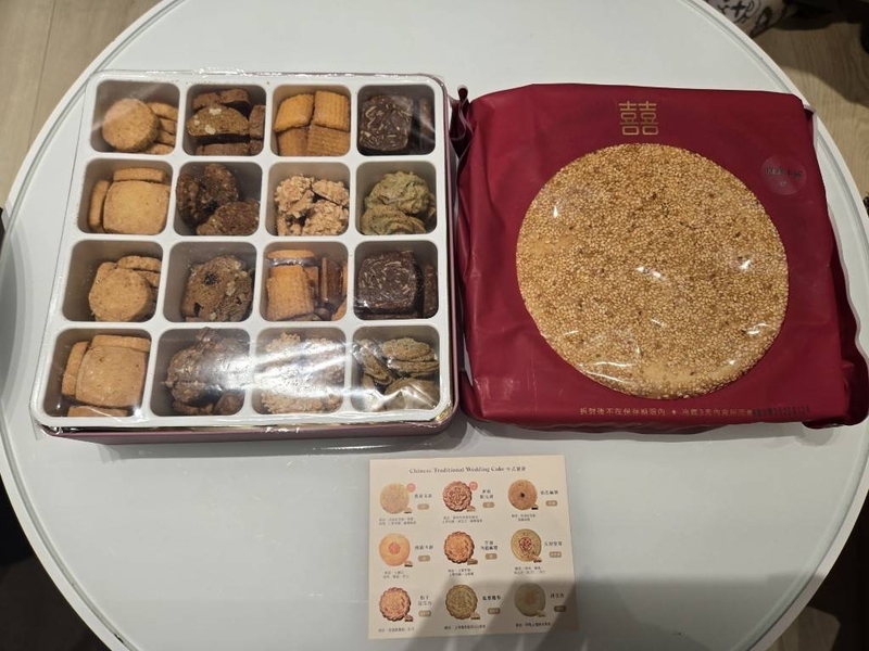 一開始就直接尋找中西合併的禮盒,上網查詢之下,大家都有推薦世唯禮盒,於是跟老婆決定試吃看看,到貨之後,打開包裝看一下,禮盒分成兩層,上面是大餅,下面是手工餅乾,我們把選擇的大餅_鴛鴦玉露馬上切開來試吃,裡面的材料都是我跟老婆愛吃的,有麻糬、紅豆豆沙、蛋黃。太好吃,當天兩個人就把大餅吃掉了,手工餅乾也是邊看電視邊吃,不知不覺也吃掉一半了,於是就直接下訂了,有問題客服人員也回應蠻快的,覺得很棒,6/22就是我跟我老婆的婚禮了,希望大家拿到禮盒之後,也跟我們一樣喜歡。