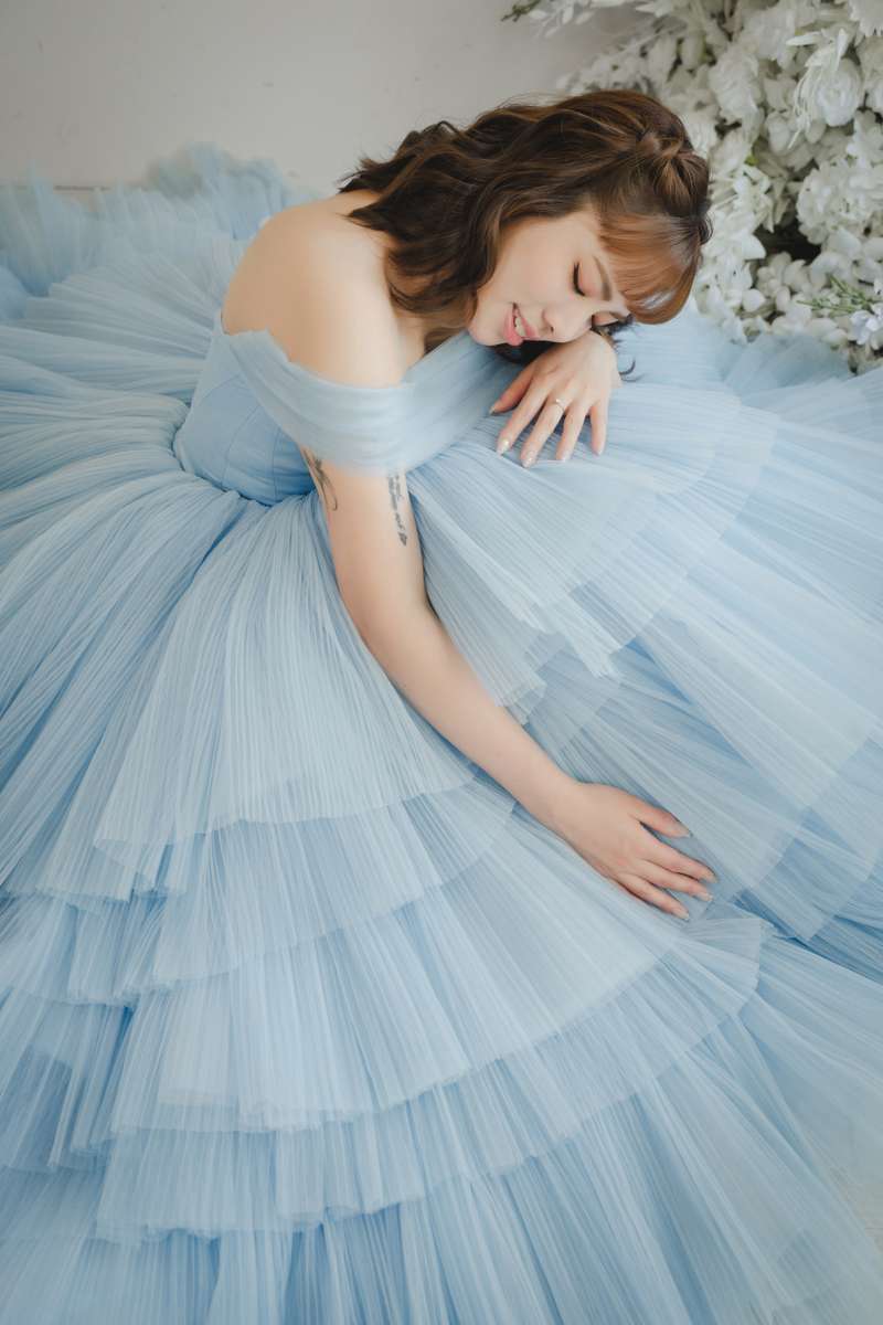 第一套是藍色蛋糕紗裙~很有仙杜瑞拉的風格~~~~