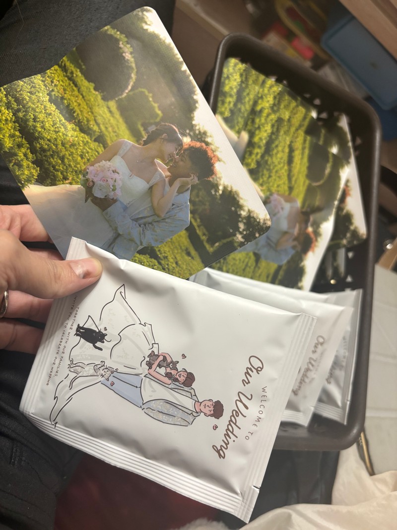 客製的掛耳包、茶包,除了外包裝精緻,內容物更是沒有馬虎,不僅可以自己選擇喜歡的烘焙度、風味,而且最重要的是豆子是在婚期前排程現烘的!(不是那種現成的廉價咖啡豆)拆開來聞到咖啡香,大家都說味道也太舒服了🥹茶葉也是聞得出來有特別挑過😍