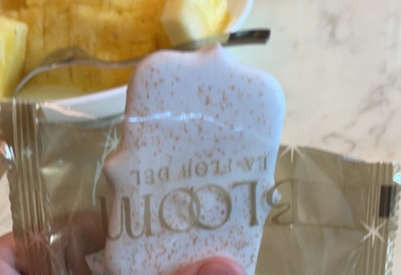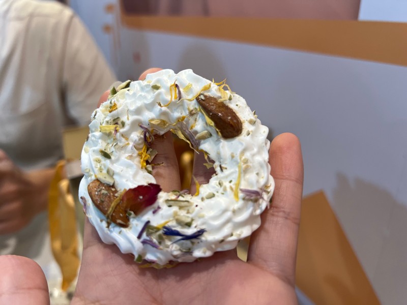 最讓人驚艷的是甜點中都巧妙融入可食用花材,像是水蜜桃花圈馬林糖與糖霜瑪德蓮,視覺與味覺都讓人印象深刻。我希望一定要有伯爵茶口味,花神也有,還有泰奶口味,還將其發揮得很細膩。