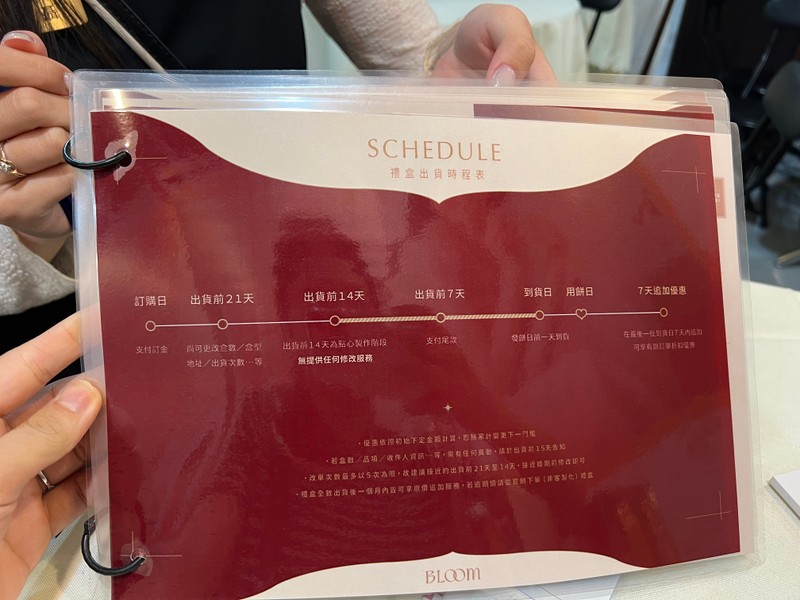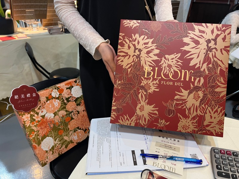 我們在2024年5月下訂了花神Bloom的喜餅,其實在參加喜餅展覽前就已鎖定這家,實際試吃後更確認了選擇是對的。外盒設計非常漂亮、夢幻(璀璨花縱非常美麗),完全符合我對高顏值喜餅的期待。