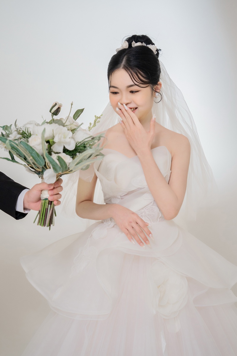 也有很多新款婚紗可以挑選,連攝影師跟造型師多到讓我們選的頭很痛。