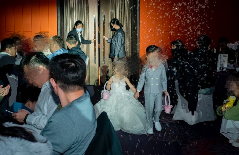 🔴 第一張原圖應呈現的是花童進場的溫馨畫面,但被裁切後變成主角是餐廳工作人員。