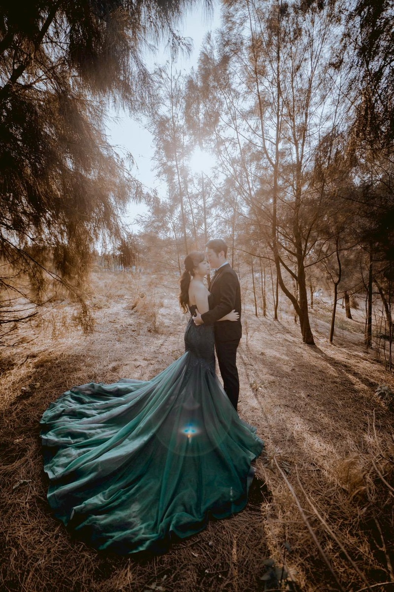 終於來到拍照當天,老天很給面子的放晴了,但沒預料到真正魔鬼是擎天崗的風,新秘老師靜儀時時刻刻幫我注意妝髮造型,上下車都會提醒我要小心頭髮,還要幫忙盯著豬隊友碰撞到我的頭髮🤣,遇到飾品選擇障礙時,靜儀想辦法讓我不用抉擇,也隨時幫我盯著禮服有沒有走光超貼心,因為擎天崗風真的太大了,汪攝當機立斷帶我們轉戰黑森林,拍出來的照片出乎意外的有氛圍,新娘我會習慣性駝背,汪攝拍照的時候一直提醒我駝背了,還巧妙的用拍攝角度幫我遮駝背,兩位老師從拍照前的討論到拍照當天都有感受到他們的用心👍