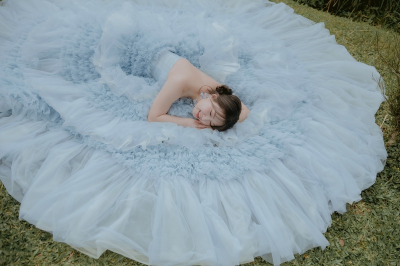 有選擇障礙的我在挑拍照婚紗的時候卡關,因為全館任挑不用加價,而且也沒有拍照用跟宴客用區分,只要你喜歡通通都可以,當然禮密們也會建議你哪些款式適合拍照用,哪些款式在宴客更能展現效果,也辛苦禮密們陪我試了無數件婚紗(因該有20件起跳😅),好不容易過了挑婚紗的關卡,結果遇到第一次拍攝的日子天氣不好,好在我們結婚準備時間抓的很鬆,J2馬上幫我們改下一次拍攝時間,沒想到第二次拍攝的前幾天都在下雨,一直到前一天還在下,在緊張徬徨中接到J2來電,幫我看了拍攝當天的天氣狀況因該可以如期拍照,也說如果我們真的擔心下雨會尊重我們的決定,但我不想再等下去了,決定相信他們的判斷賭一把