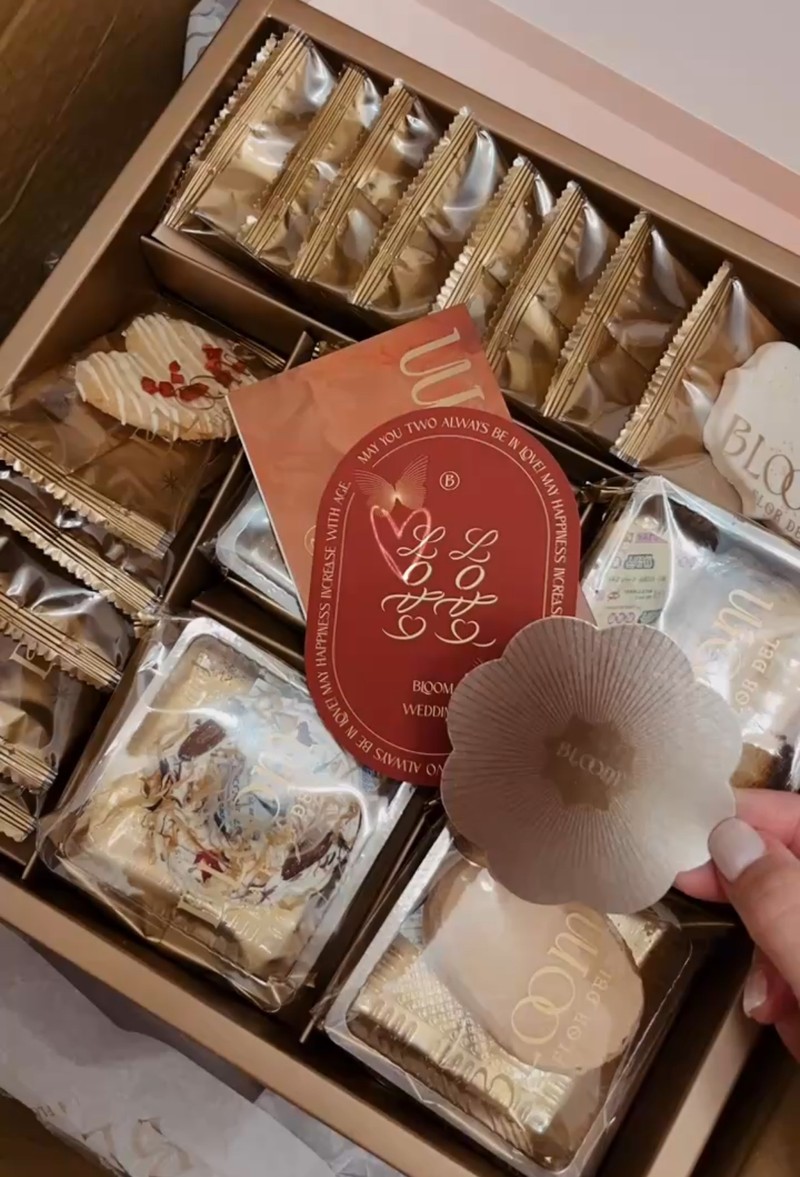 喜餅品牌琳瑯滿目,「Bloom花神精品法式喜餅」是在眾多選擇中最吸引我且最符合期待的。餅乾糕點種類多樣,每一種風味皆具特色,搭配豐富的口感,口口都有不同層次的驚喜感受,造型設計方面更是漂亮吸睛,從每一處細節都可以感受到花神對待喜餅的用心。另外,喜餅盒及提袋凸顯品牌特色,走華麗澎湃的風格,承載新人希望帶給大家的喜悅,讓每個人感受到滿滿的幸福感,選擇花神就像是體驗了滿足視覺與味蕾的饗宴!關於服務方面,喜餅口味的挑選、盒數及出貨時間等都可以靠官方line快速溝通,非常便利,小編也都非常有耐心的協助處理。個人真的非常推薦Bloom花神喜餅用來傳遞幸福喔!