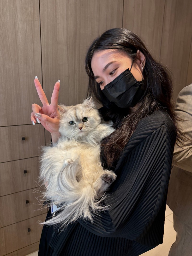 華納的團隊真的非常貼心,從我們提出想帶貓咪一起拍攝開始,就給了我們很多安心感。攝影師非常有耐心,捕捉了米雪超級多可愛又自然的畫面,不管是她躲在裙擺裡的小身影,還是被抱在懷裡呼嚕呼嚕的模樣,每一張都讓我感動得差點眼眶泛淚。