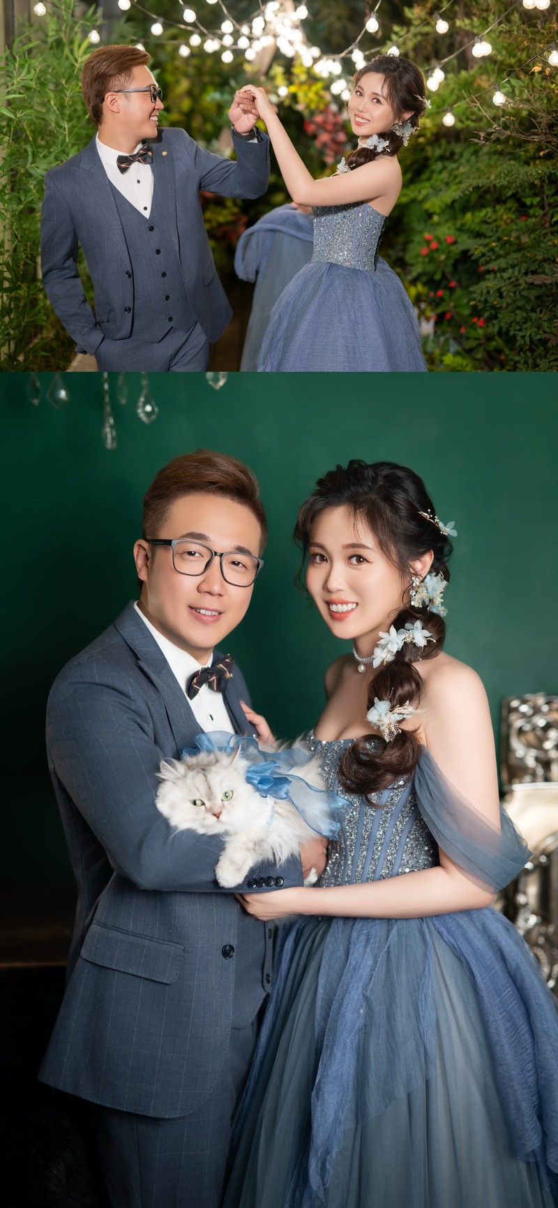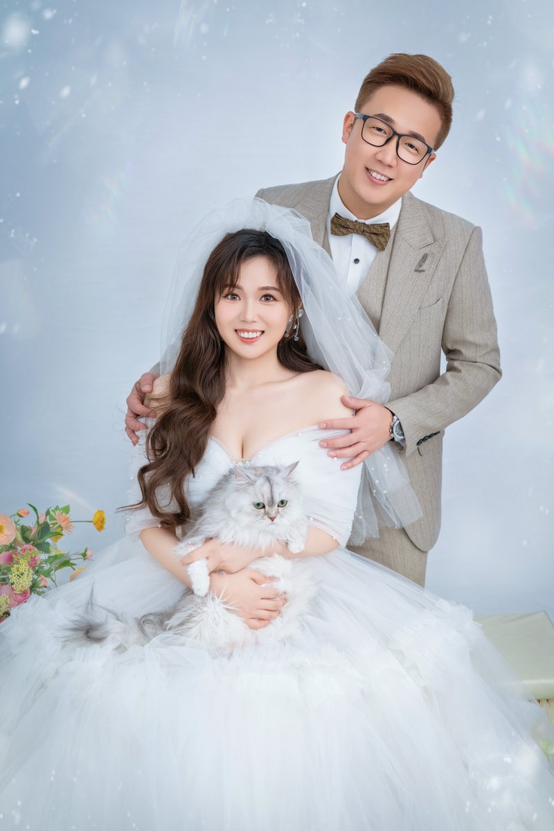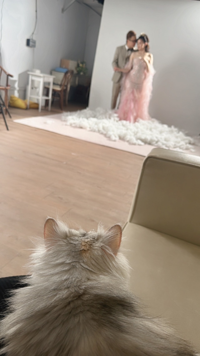 這次特別想記錄的不只是我們兩個人的愛情,還有陪伴我們多年的寶貝貓咪——米雪,一隻白色長毛金吉拉。她是我們的家人、我們的寶貝,我們一直很希望她也能一起出現在婚紗照裡,成為我們人生中這段重要旅程的見證。