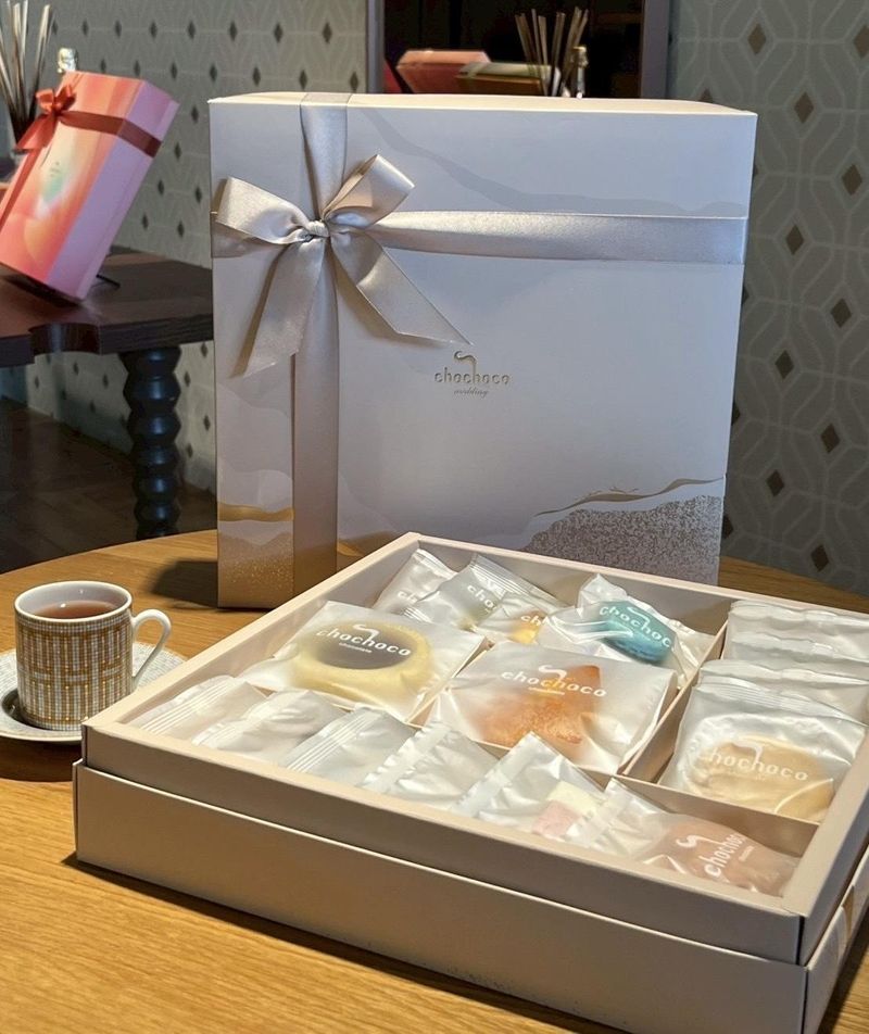 我送的是 chochoco,其實也是被新娘社團燒到!常常滑社團就看到大家分享他們家的包裝超美,然後我就是那種外貌協會的,先被包裝收服再來看內容,所以就默默預約了試吃!