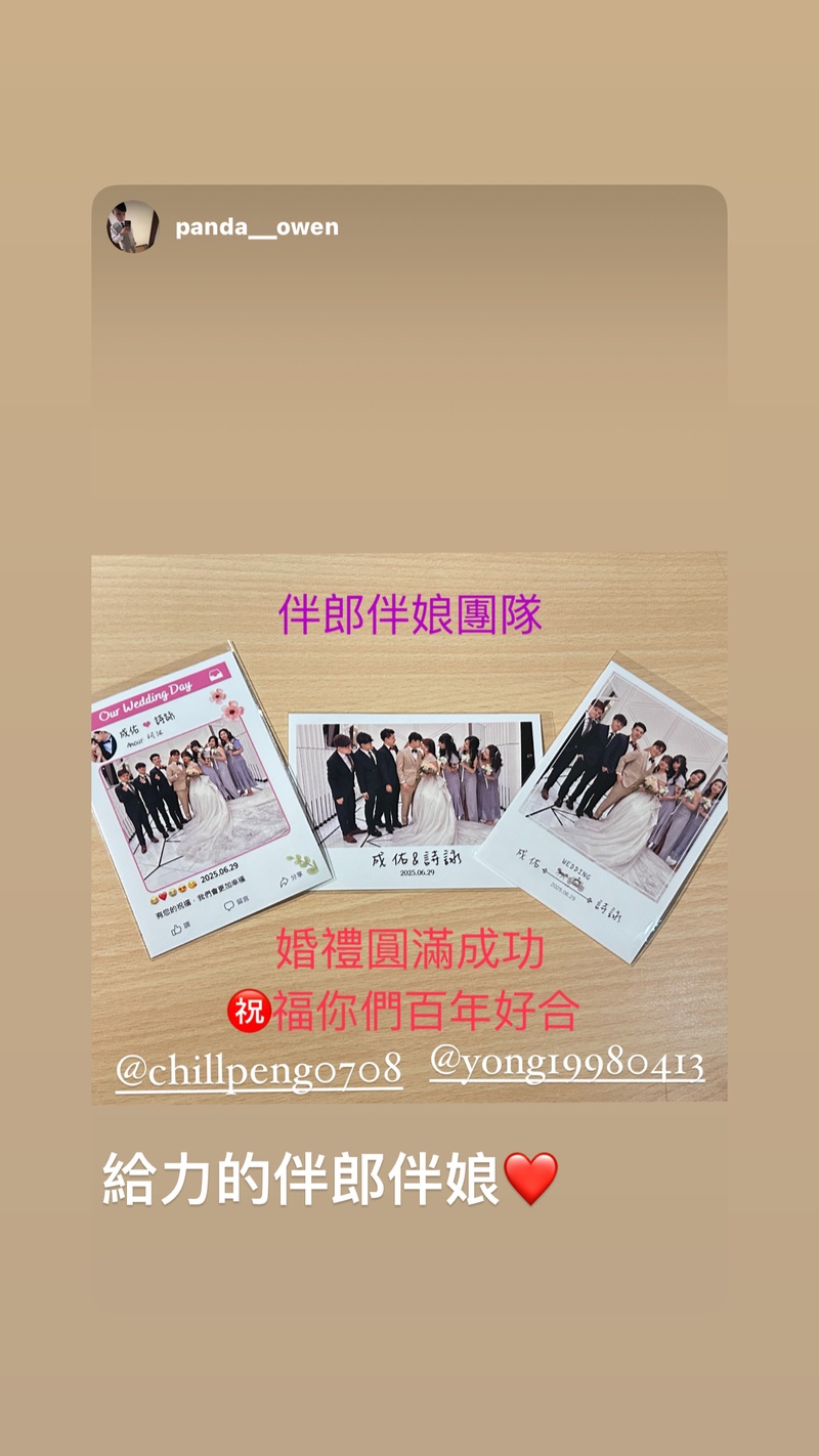 現場由 晴天與小幫手親自到場協助,不只專業又親切,還引導賓客怎麼拍、怎麼列印,長輩也能輕鬆上手,完全零負擔~更感動的是,他們還會幫忙抓拍新人與賓客的互動畫面,還會偷偷幫忙挑幾張漂亮照片多印給我們新人,根本就是神隊友啊!