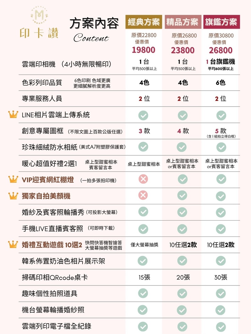 所以服務整體上是很滿意,很開心有請印卡讚幫我和所有賓客留下珍貴的回憶!