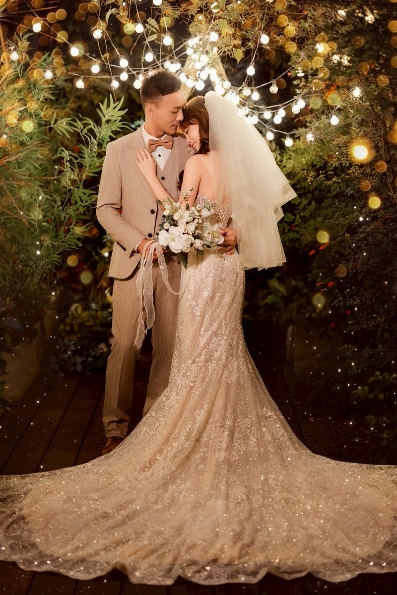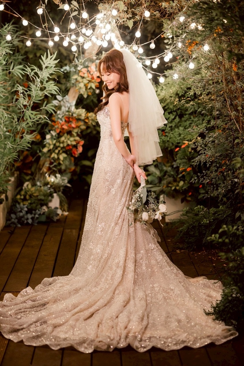 女方的婚紗以貼鑽跟同材質的紗呈現立體感