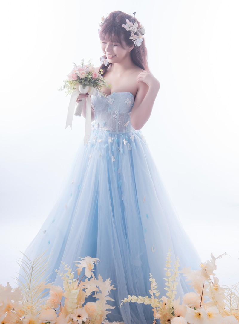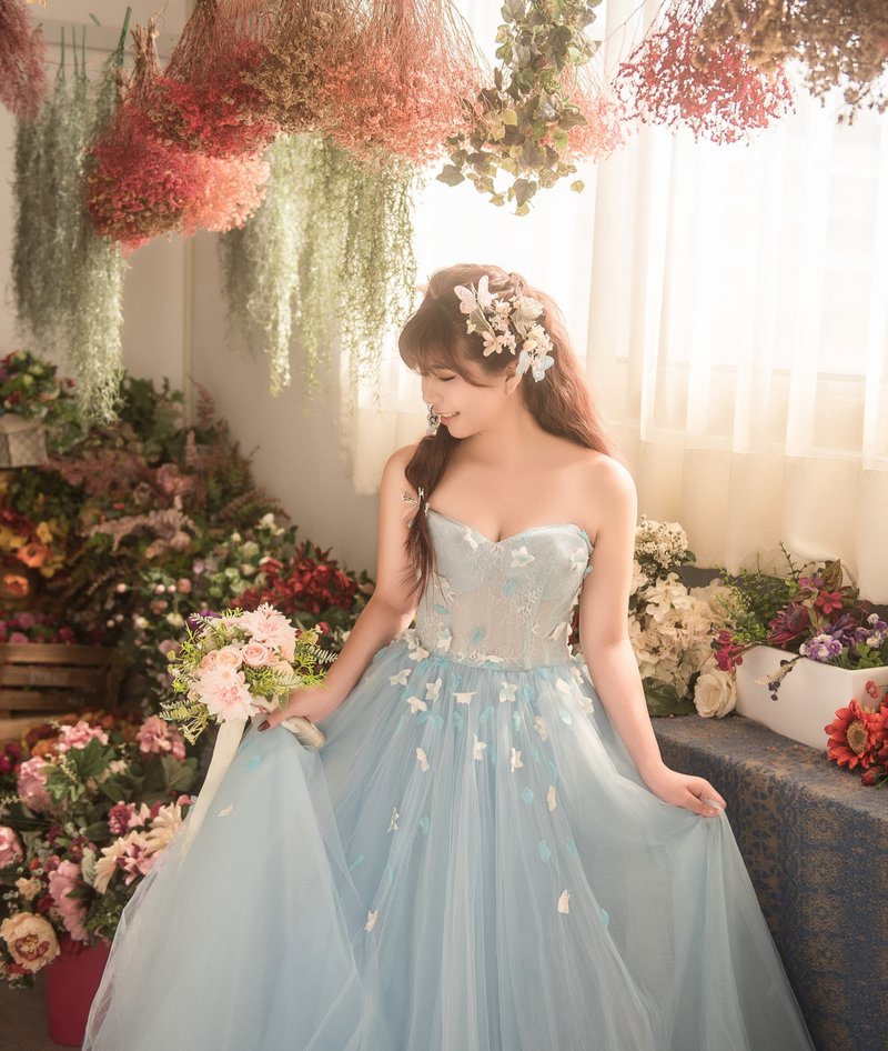 我是選兩套晚禮服一套便服的方案,想呈現不同的風格,所以我跟造型老師、攝影老師也有說明我的需求,自己準備了很多圖片,老師也很用心的幫我安排滿足我的需求,比如我希望有的道具跟動作、拍攝手法。