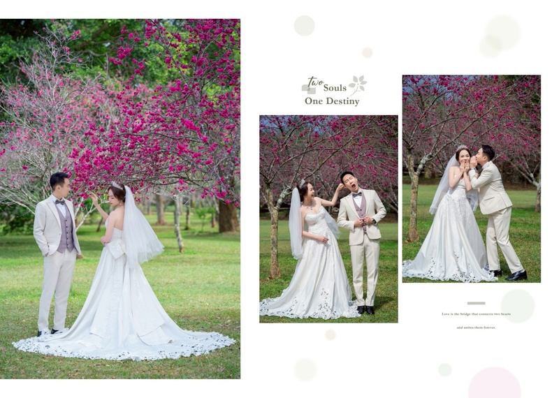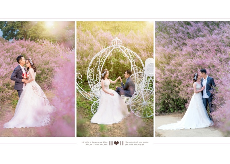 我很喜歡花,有婚紗在粉紅色花海中拍攝的夢,感謝老公陪我圓夢,很早就有看好地點南投中寮有3000坪麝香木花海的瑰蜜甜心玫瑰園(粉紅山丘麝香木)拍攝,拍全外景真的很吃花季與天氣,時尚婚紗有機制是遇到真的無法拍攝的下雨天,可以改期,感謝天氣最後我們沒有使用到這個機制。最後與攝影師-劉攝討論後外拍路線決定是暨南大學→日月潭→粉紅山丘麝香木。