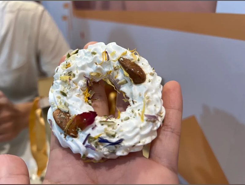試吃了花神二十幾種的品項,最讓人驚艷的是甜點中都巧妙融入可食用花材,像是水蜜桃花圈馬林糖與糖霜瑪德蓮,視覺與味覺都讓人印象深刻。另外蘊含茶風味的甜點花神也有,口感細膩且獨特。