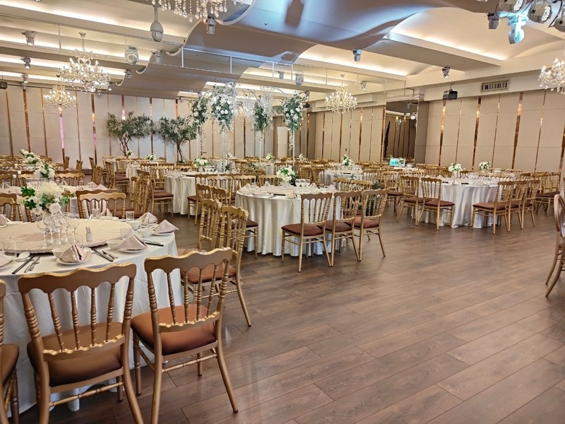 這次實際到場看更覺得物超所值!宴會廳挑高又明亮,場地裝潢典雅又大氣,搭配水晶吊燈、花藝佈置,現場氛圍真的很有質感。最加分的是地板是新換過的,整體環境乾淨舒服,長輩們也看得很開心。
