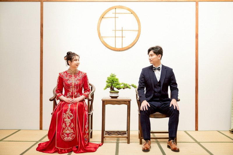 到了婚紗照拍攝當天,因為很少化妝,對適合自己的妝容毫無頭緒,造型老師Joyce幫我畫了自然又有質感妝容 ,還有這三套妝髮我都很喜歡。