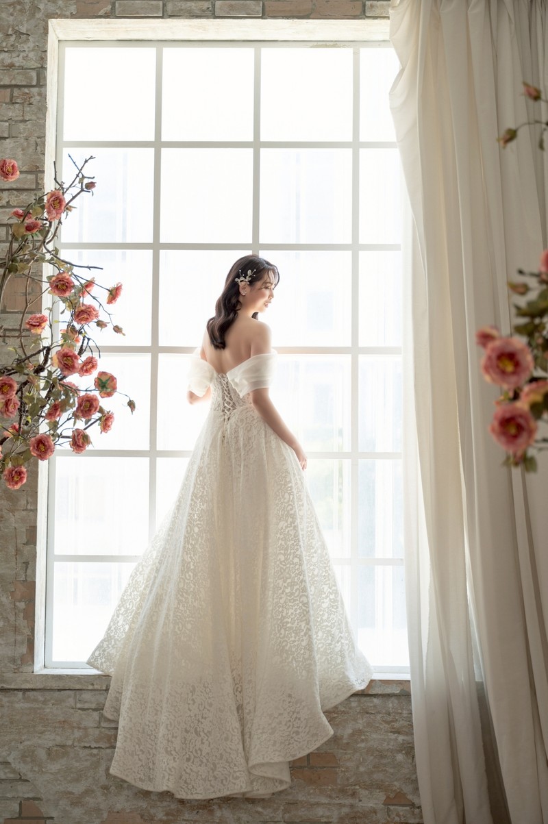 我們的禮服顧問Hanna,雖然前一天她剛拔完智齒...但依然很耐心地介紹,讓我在試穿的過程中非常舒適自在,也會依照我們拍攝的地點給我一些婚紗建議。