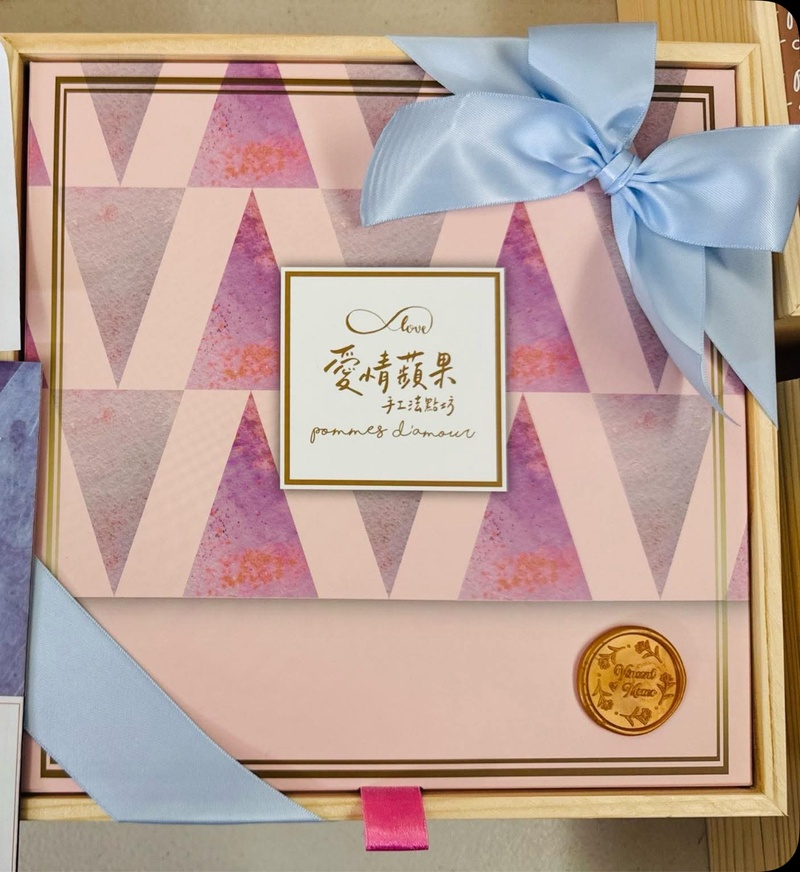 拿到試吃盒後,當我打開這盒「愛情蘋果」手工喜餅時,真的被它的包裝美到捨不得拆。粉嫩的幾何設計搭配藍緞帶,滿滿儀式感,連送禮都倍有面子(緞帶還有其他顏色可以客製選擇搭配)。裡面每一樣甜點都是精心製作的,像是酥香的手工餅乾、濕潤的瑪德蓮、入口即化的蛋白霜,每一口都吃得出用心。朋友收到後也讚不絕口,覺得這不只是喜餅,更像是一份藝術品。對我來說,這不只是在分享喜悅,更是把我們的幸福,用最美的方式送到每個人的手中。選它當喜餅,真的選對了!