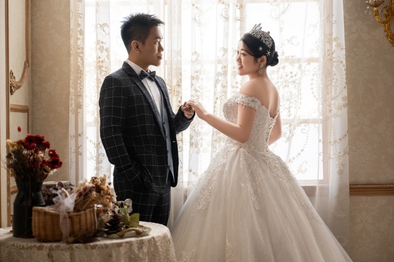 幸運的是,初遇見接待的顧問是王鐶霖(BRYAN),他的熱心親切,導覽婚紗、佈景、首飾等,快速的理解我們的需求,達到我們的期望,無任何壓迫的推銷行為,像朋友一樣的適時給與建議,分享拍攝的小細節,給予我們滿滿的安心感。