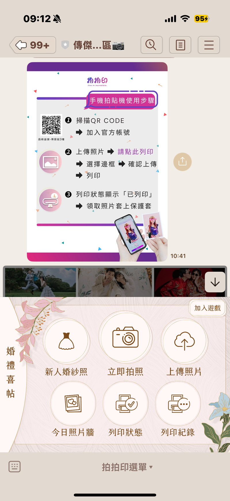再來就是現場的遊戲真的很棒,後台的設置也很清楚易懂,當天賓客只要掃瞄Qrcode 就能加入遊戲,非常容易上手。再來就是拍拍印提供的官方line,就像是婚禮小秘書一樣,可以有餐廳地點的地圖連結,讓賓客輕鬆的一站式了解所有的婚禮資訊