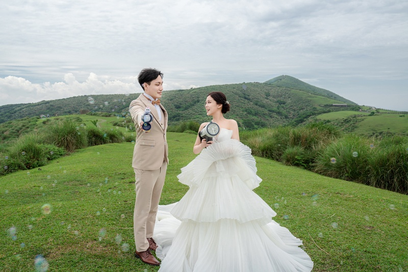 燈光師米分也是拍攝當天的幕後功臣,默默協助道具與婚紗調整,細心又專業。