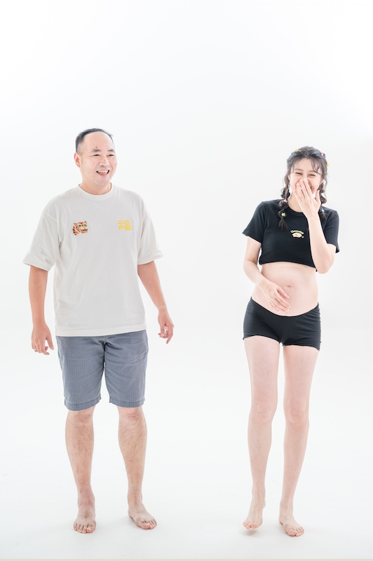 攝影師 JOHNNY 和燈光師阿智兩位非常專業,而且相當會提供情緒價值~~讓被拍攝者被稱讚得心情很好哈哈。拍攝過程中也很貼心,會關心孕婦是否覺得太熱,但我比較怕冷,所以配合我關掉空調後他們好熱 XD