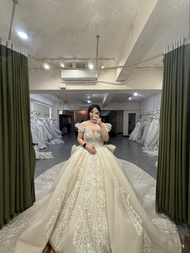 真的也十分感謝他在我提出想去海邊及草地拍照時給了我許多最真實的建議,因為本身是肉肉女孩,在挑選禮服的時候一直想著要修飾身形,很感謝佳璇也提醒了我可以等宴客後再考慮修飾身形的禮服,而且手腳非常俐落,試穿速度也非常的到位,當天不到一小時就已經完成挑選婚紗😂也讓我們順利挑到喜歡的拍照禮服!