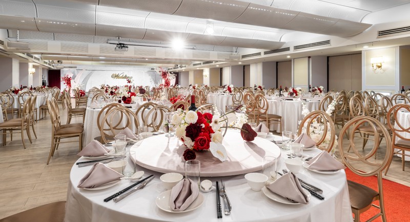我們在參觀過多間婚宴場地後,最終決定下訂新板彭園,主要是因為場地的整體質感與服務都讓人非常安心。位於板橋精華地段,交通便利,對南北賓客來說都很方便。宴會廳挑高寬敞、風格典雅,不論是迎娶儀式或午宴流程都能完整安排,非常符合我們對婚禮的期待。