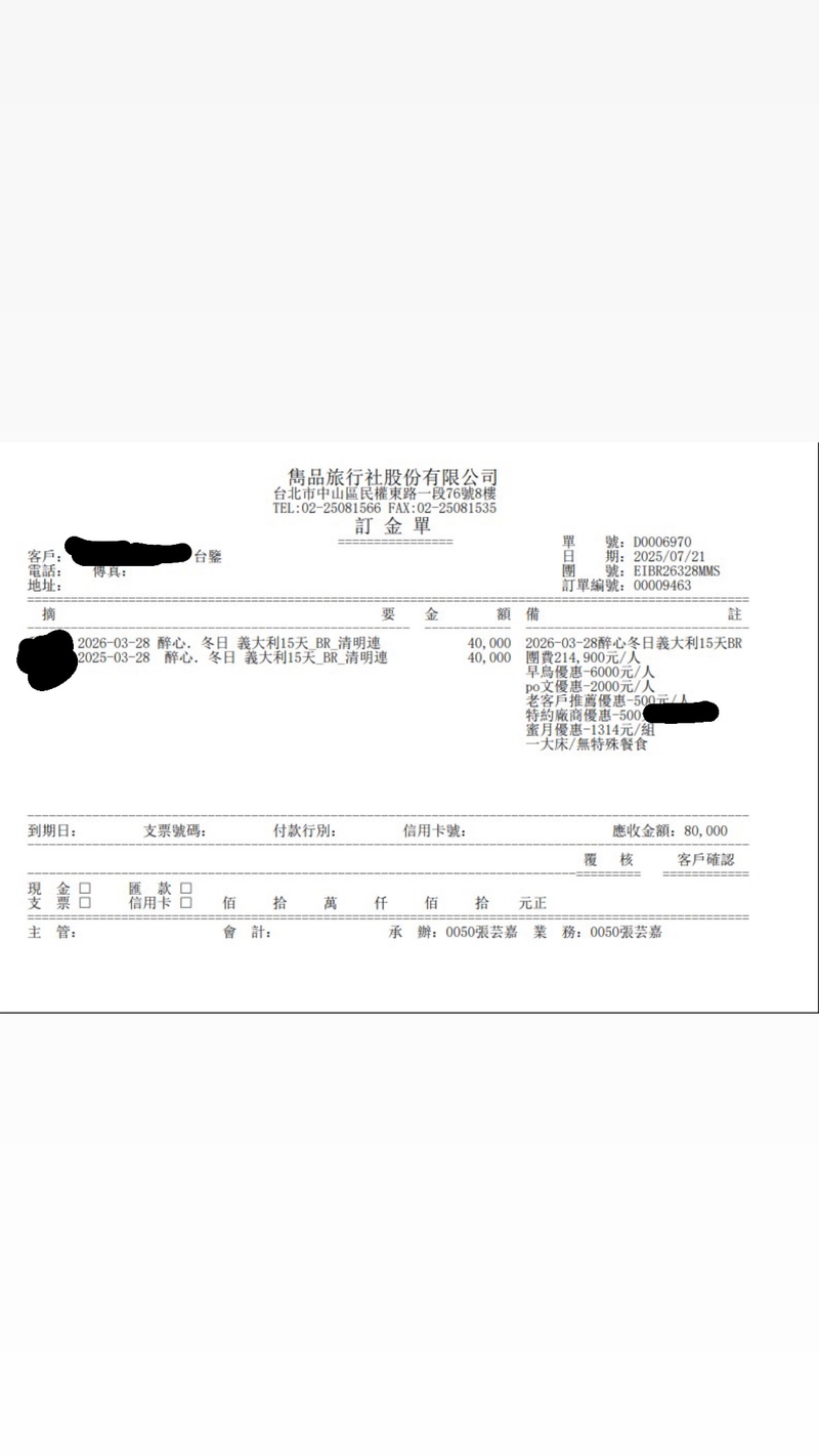 從一開始與雋品業務人員芸嘉接洽,她就非常親切、專業,對於我所有的疑問都耐心解說,也讓我更加安心與放心。看著地圖和行程內容,已經可以想像自己在威尼斯搭貢多拉、在米蘭大教堂前拍照、在佛羅倫斯欣賞日落,真的很期待旅程早日到來!