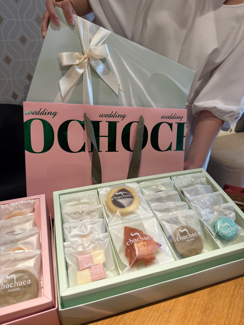 網路預約了四家喜餅試吃,分別是:蒙恩、chochoco、ooh la love、順道