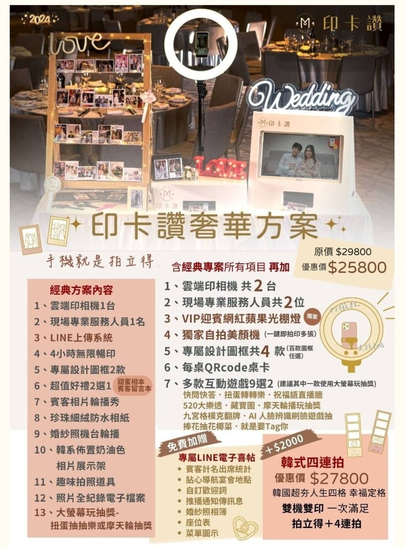 幾年前在親友婚禮上有體驗過相印服務覺得蠻好玩的,這次輪到自己結婚,也想讓賓客將當天的回憶實體化,直接把美美的照片帶回家!