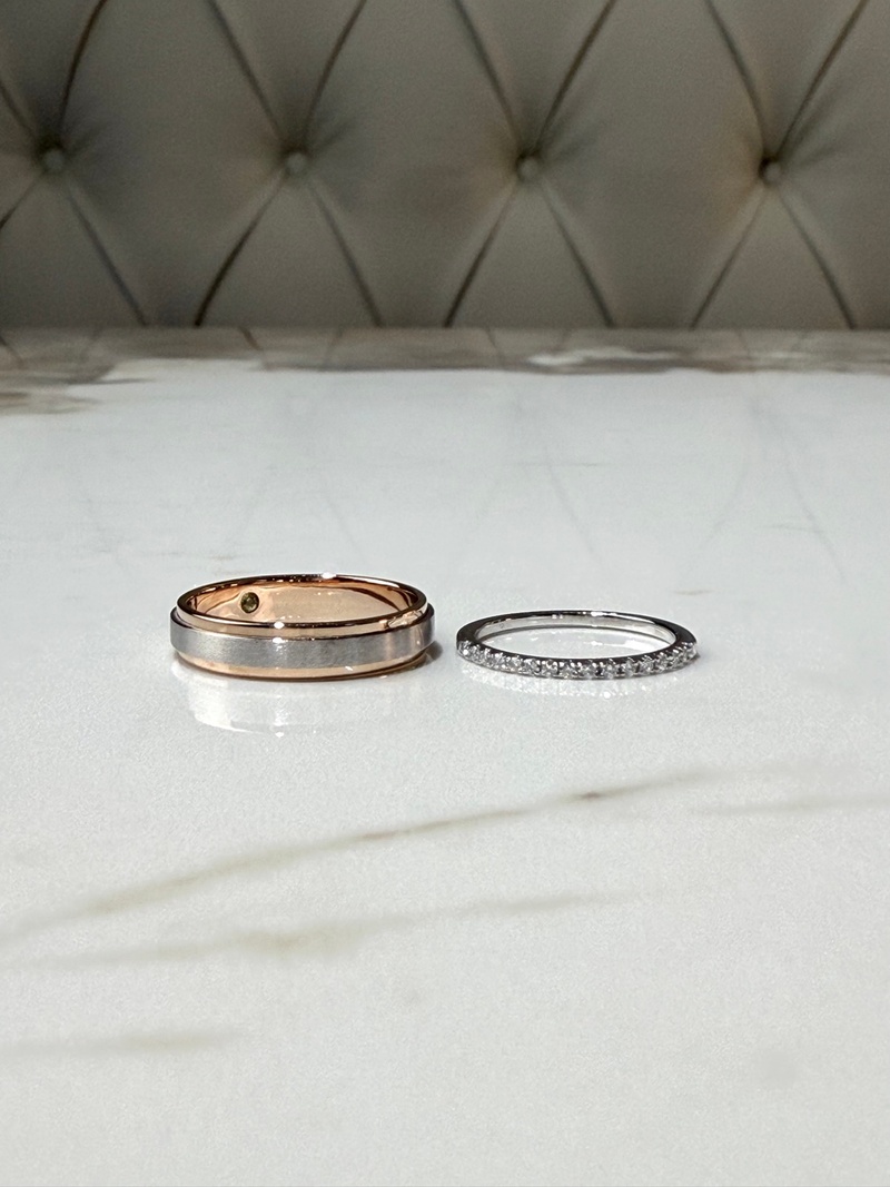 在一個天氣溫度濕度都相當不錯的日子,我和老公到市集逛逛,原先是想看看喜餅,最後被亮眼的線戒跟親切漂亮的姐姐們給吸引,駐足在羅仕珠寶。其實原先已經有看了幾間其他珠寶店家,但在姐姐們親切熱絡的討論說明、測量及氣氛輕鬆服務下,果斷的下單,而且成品也不負所望,CP值超高,覺得超級開心🥳🥳🥳 非常推薦有需求的新人到現場感受專業服務及成果!!