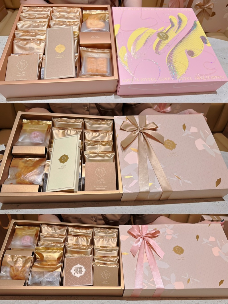 花了些時間在各大平台上找尋新人們推薦的喜餅店,Candy Wedding映入眼簾,先是被他們家的禮盒所吸引😍,禮盒非常漂亮,緞帶設計直接提升禮盒質感,就決定預約試吃看看。