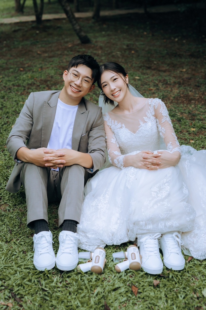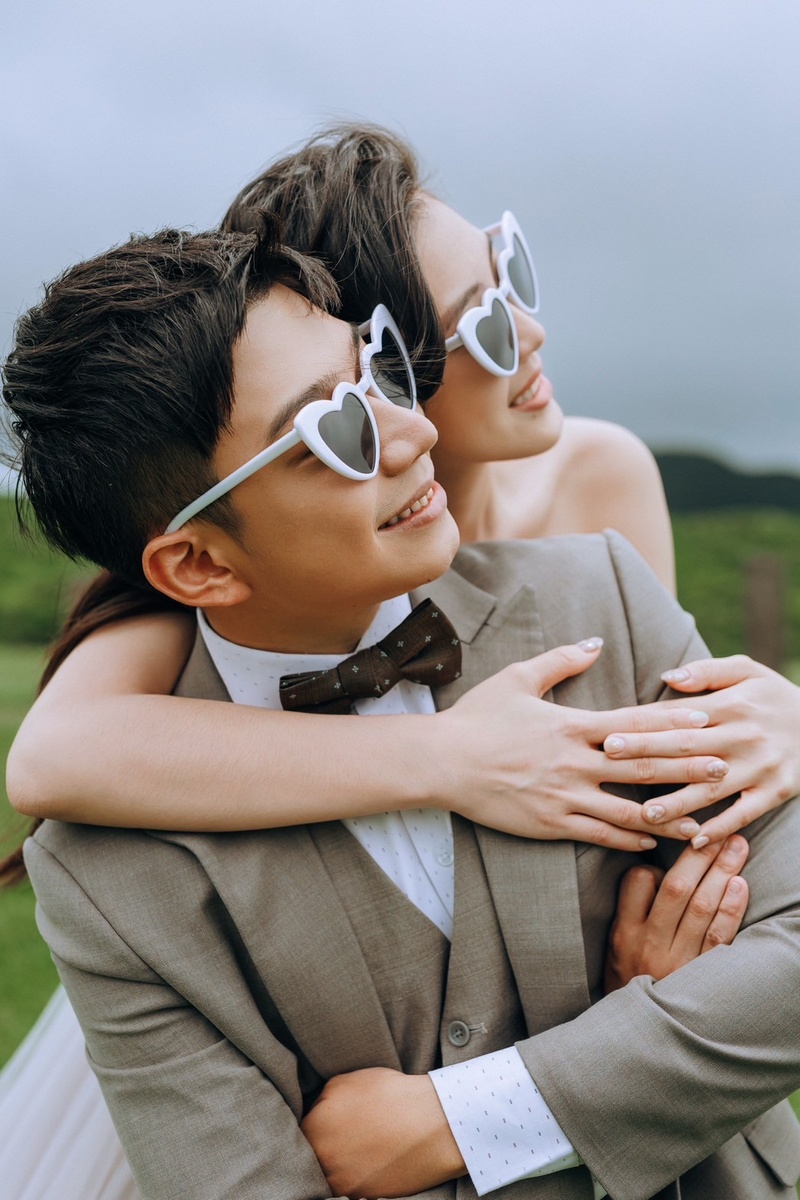 7/22日早上前往麗舍進行化妝與最後試衣服,全程化妝師保持良好的互動與極強的專業性,精確的抓準了我們喜歡的妝容,整裝出發後天空不作美下起了雨,好在到擎天崗後老天給面子出了太陽,拍攝期間攝影師帥哥阿瑞(陳映瑞)展現了高超的拍攝技巧,全程使用互動搞笑的方式讓整天的拍攝充滿著歡笑與熱情,每一張照片都充滿著自然洋溢的笑容,風格也與當初所討論的一樣甚至更優秀,外跟的化妝師也都會在拍攝前中後都幫忙補妝與調整髮型,非常的貼心,這次拍攝婚紗整體的評分遠超100分,如果之後換老婆了再來拍一次。