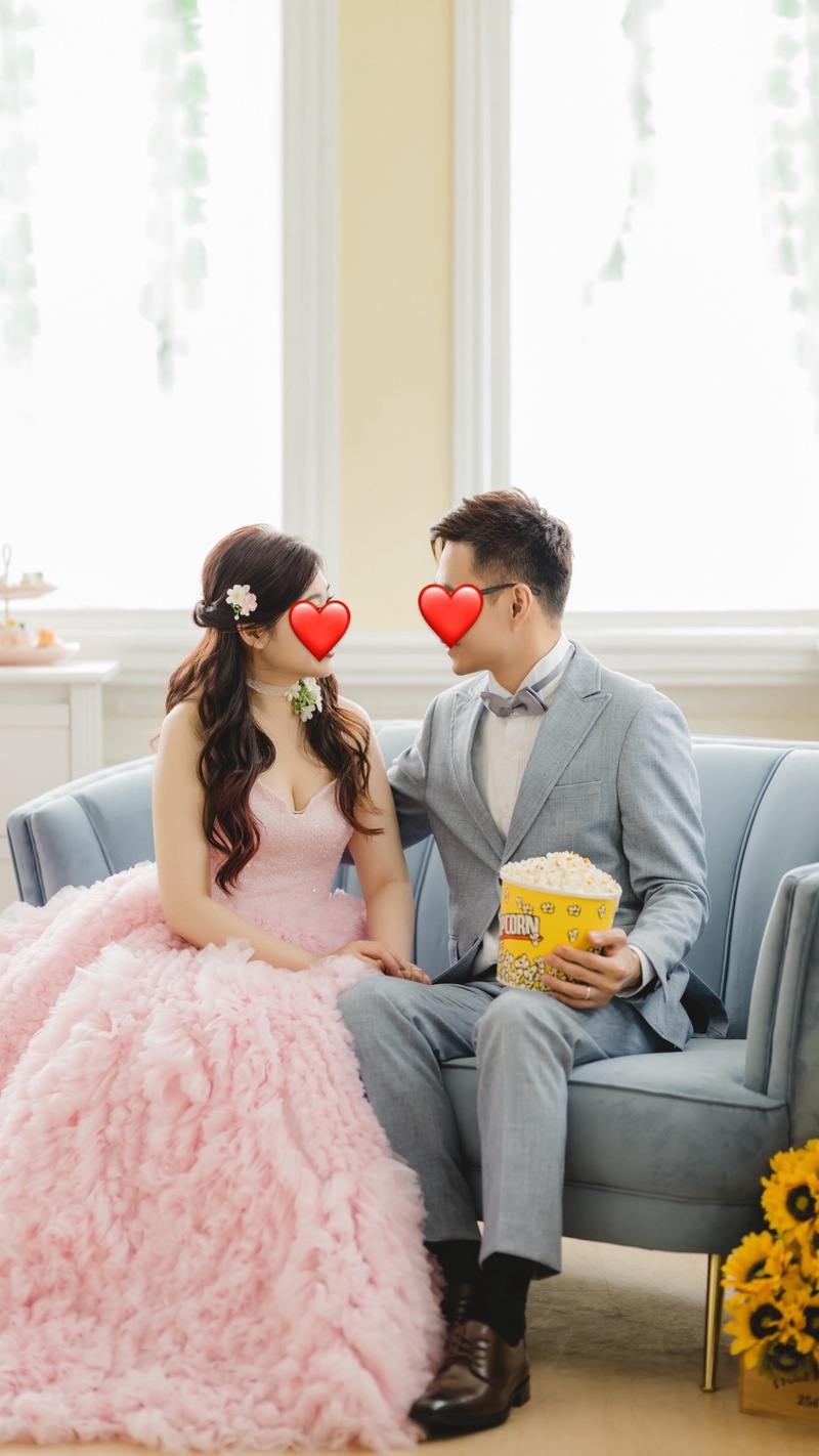 拍攝當天,因為我們平常不怎麼拍照,本來很擔心肢體、笑容僵硬,但是KEN老師非常專業又會引導,老師人很幽默,讓整個拍攝過程順利又愉快,拍攝過程中燈光師阿鴻也都會隨時在旁邊協助、幫忙順服裝,妍蓁老師也非常專業根據挑的禮服給出每套最適合的整體造型建議,拍照過程也都在旁邊隨時注意整體造型,整個拍攝過程就是非常安心,成果也非常滿意。