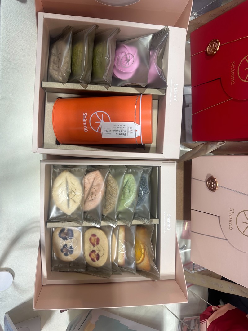 禮盒有低消,搭配方式自由度高,可以搭配喜歡的品項。我喜歡的點是以前對於喜餅的印象是很乾、吃了很澀很噎,但是山木島有提供濕體的蛋糕如瑪德蓮、費南雪等。