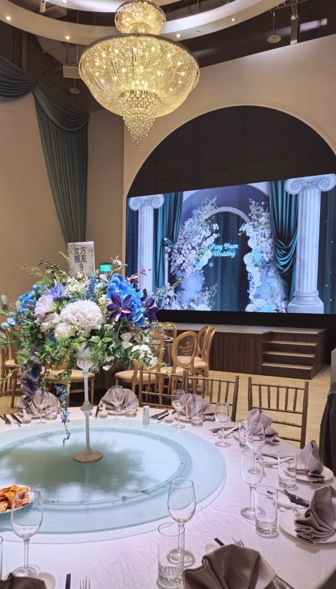 因為我們參觀的是A廳,文哲還有展示燈光、音效給我們看,看得我們目不轉睛!還覺得很有迪士尼公主的感覺,完全滿足了我的幻想,桌數沒那麼多的我們也告訴我們之後要怎麼去做場地擺設會更好,一開始看網路照片真的還沒有那麼多感受,到了現場完全顛覆我們的想像,原本還在跟先生討論要多參觀幾家婚宴會館在做決定,參觀完先生直接對我說,其他不用看了,你看不上,完全顯示了彭園的完美😍