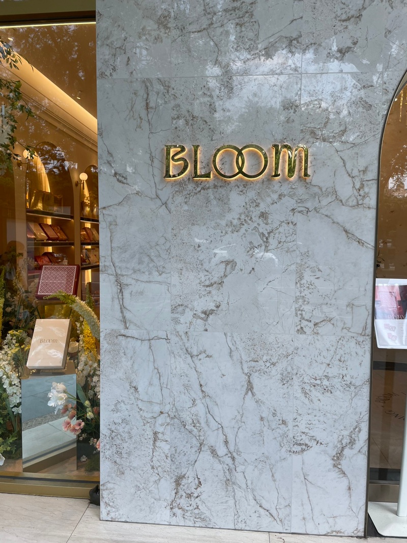 我們在網路上預約試吃後,踏進「Bloom花神」的大廳時,馬上就被精緻典雅的環境給吸引了,一樓大廳的展示空間佈置滿浪漫的花草,還有大廳中間的長桌展示每款口味的喜餅小點是用透明小柱子乍看之下真的超級夢幻的,這樣的藝術感與小巧思,每個角落隨拍都是美美的網美照。