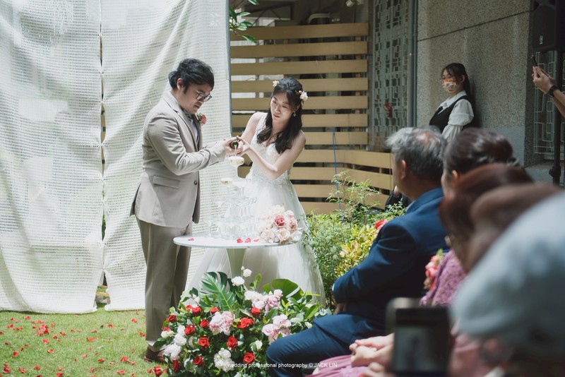 婚禮當天傑克一人攝影,非常辛苦及專業捕捉所有證婚畫面,還有後續用餐及送客畫面,留下非常多美好回憶,謝謝傑克,而且真的CP值很高因為攝影沒有限小時數,當時洽談就表示會幫我們從頭到尾攝影,有其他時間的時候也是幫我們拍攝類婚紗,重點是婚禮隔天就先提供了搶先版照片,兩週後就給了所有照片,真的很推薦,大家可以放心選擇!